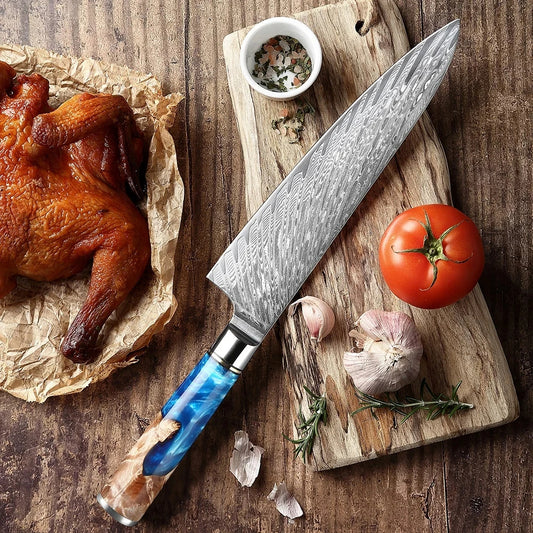 Tesoro Damascato Azzurro - Cuchillo de Chef de 20 cm de acero damasco VG10 - 67 capas